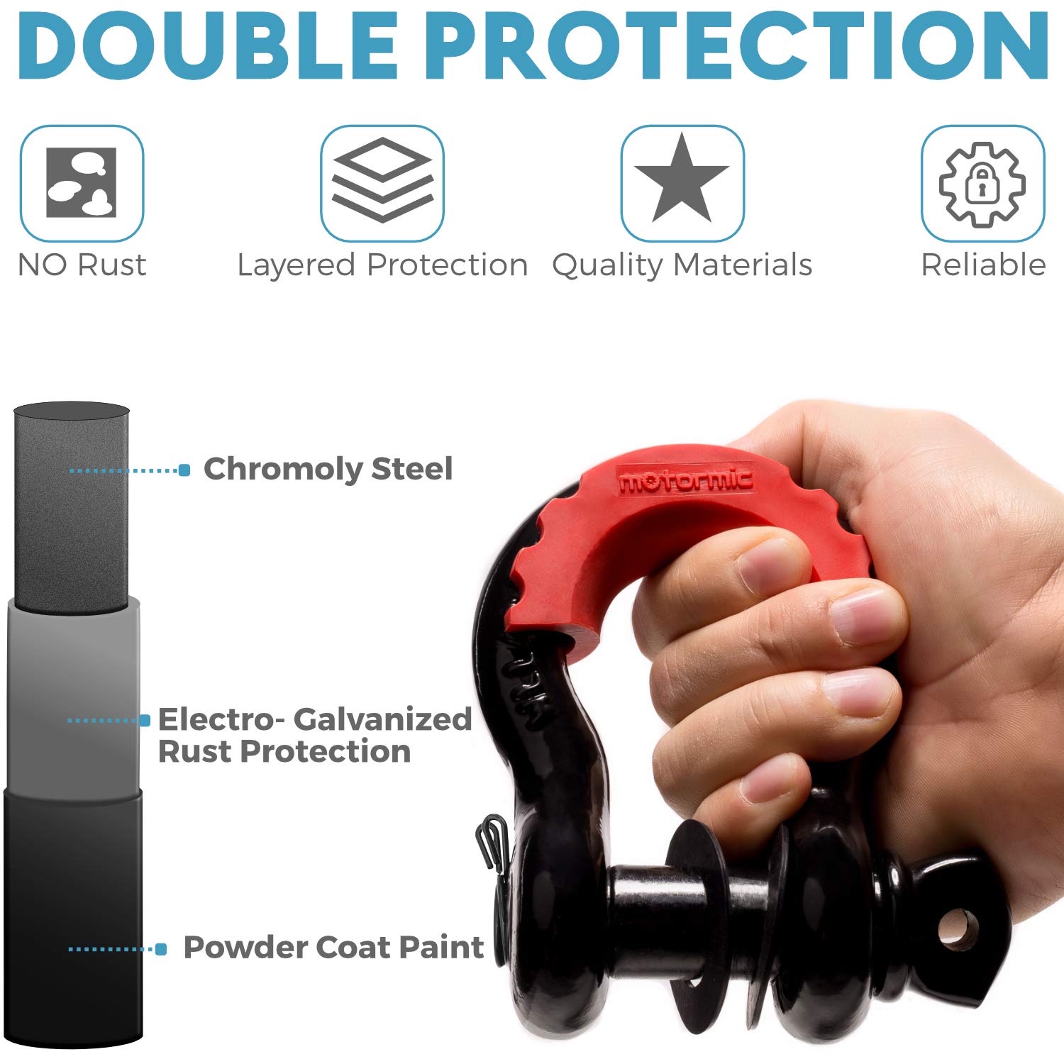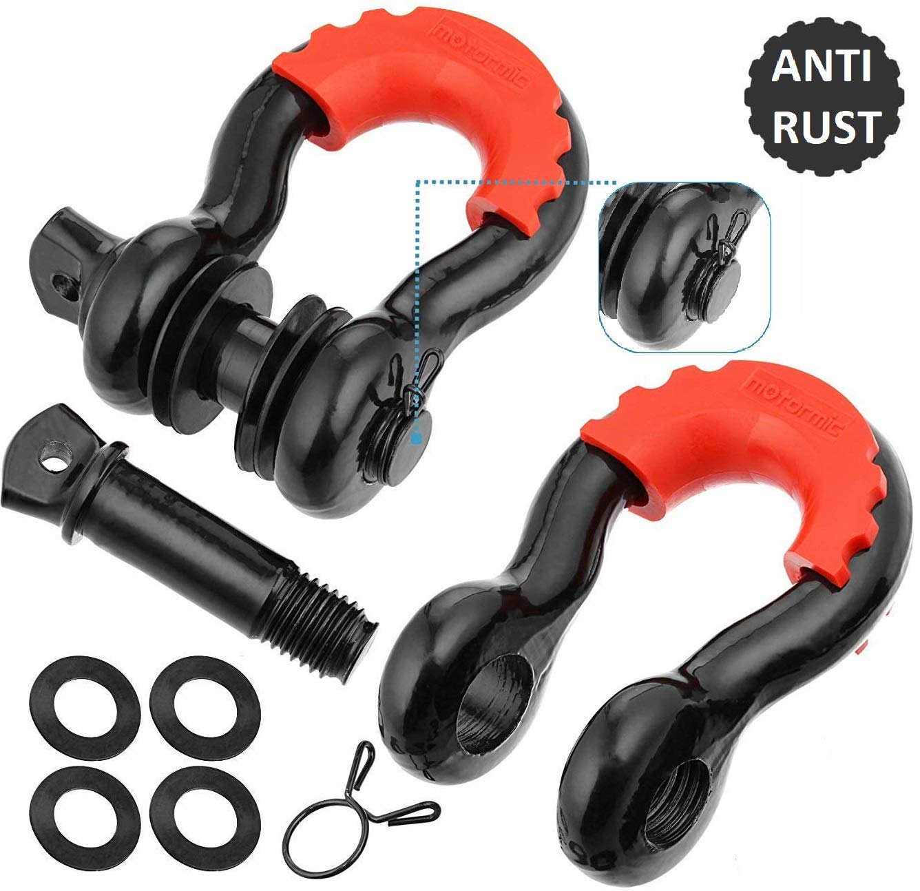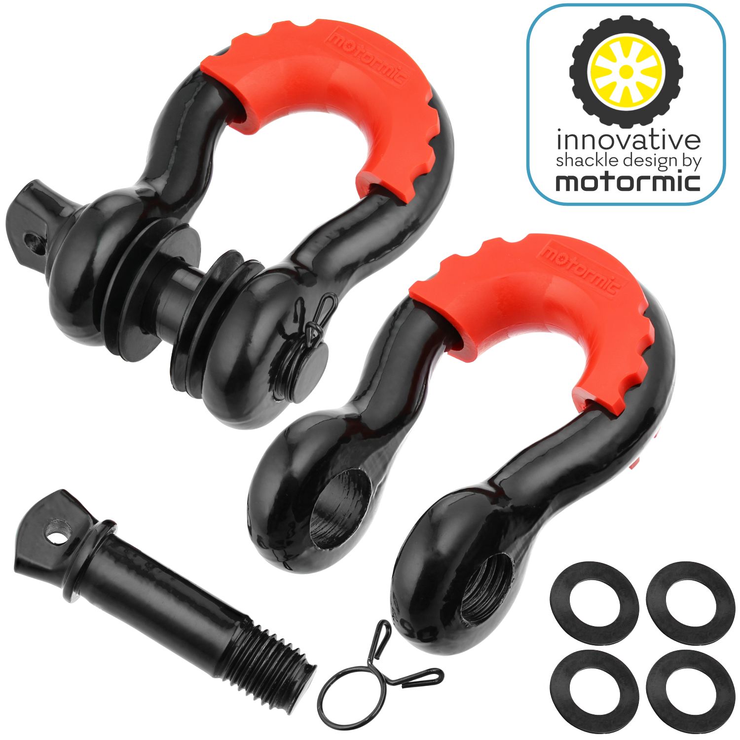 MOTORMIC SHACKLE HITCH RECEIVER FOR 2-INCH RECEIVERS WITH 3/4″ D-RING BLACK POWDER COATED (11,000 LBS. CAPACITY) + RED SILICONE ISOLATOR + 5/8″ HITCH PIN AND EXTRA CLIP, IDEAL FOR TOWING CARS, TRUCKS, ATV, BOATS