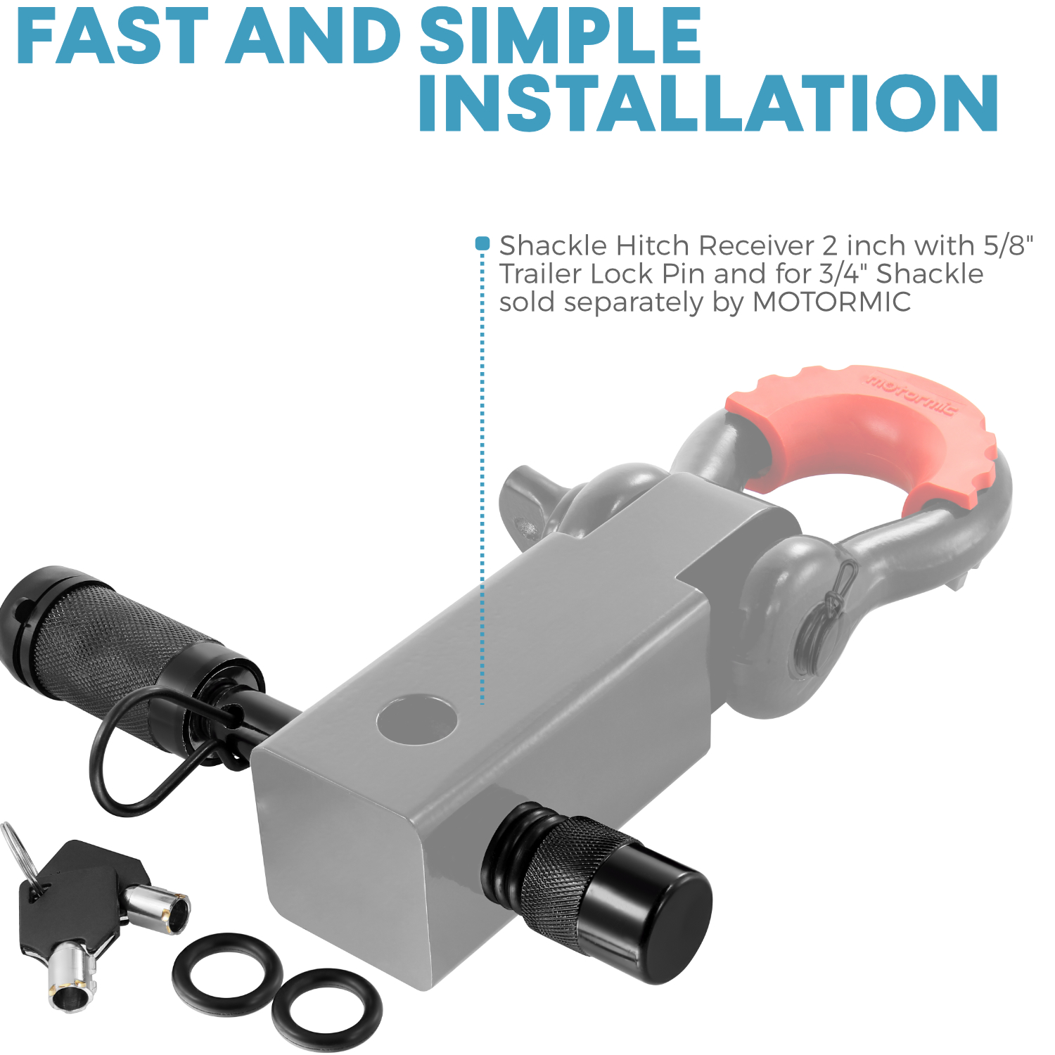 Motormic Shackle Hitch Receiver for 2-Inch Receivers with 3/4″ D-Ring Black Powder Coated (11,000 lbs. Capacity) + Red Silicone Isolator + 5/8″ Hitch Lock Pin with KEYS AND EXTRA Clip, Ideal for towing Cars, Trucks, Atv, Boats