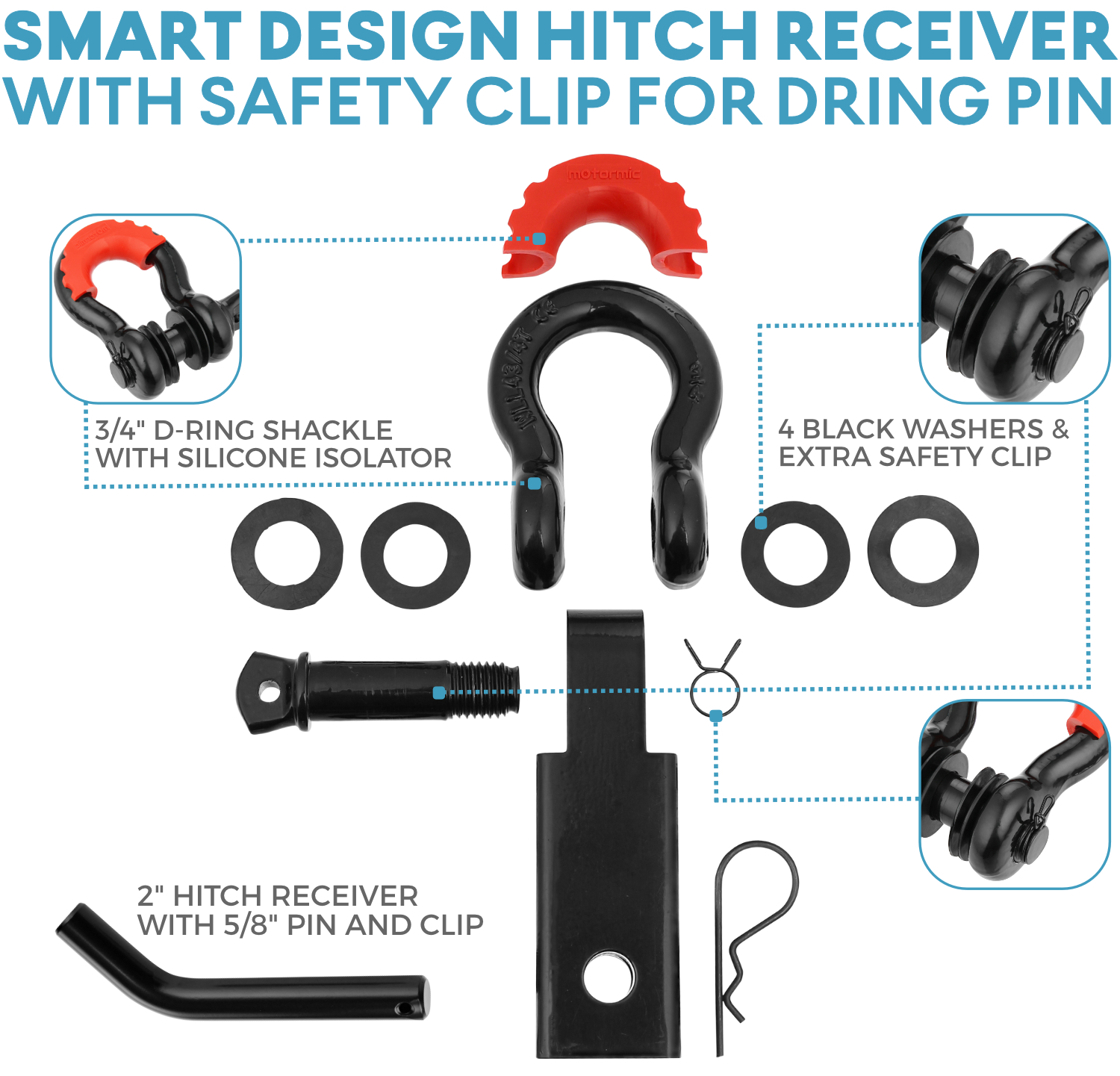 - WORKS PERFECT WITH: Tow Strap Shackle Protector, D-ring Shackle Hitch Receiver, Tow Shackle and all Off Road Recovery Strap KITS