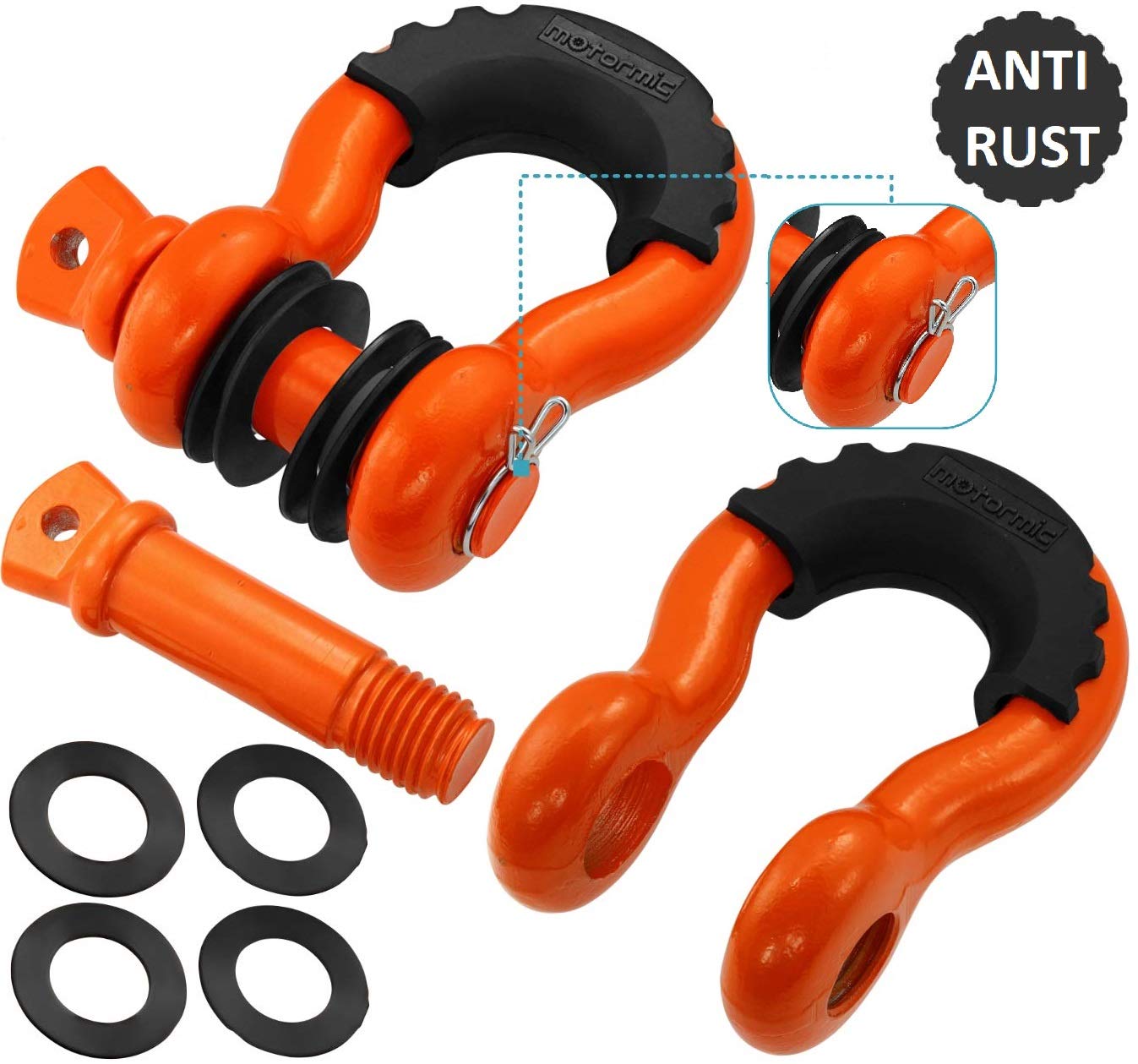 - D-RING SHACKLES: These 2 pieces of ¾-Inches D Rings with Red Plastic Isolator is designed to prevent rattling against anchor points when is mounted. Drop Forged Steel and plated with a zinc coating for corrosion resistance, it is rated at 9,500 lbs. loading capacity. Heavy Duty recommended by professionals is built to resist any kind of harsh conditions. Designed in accordance with globally rated performance standards.