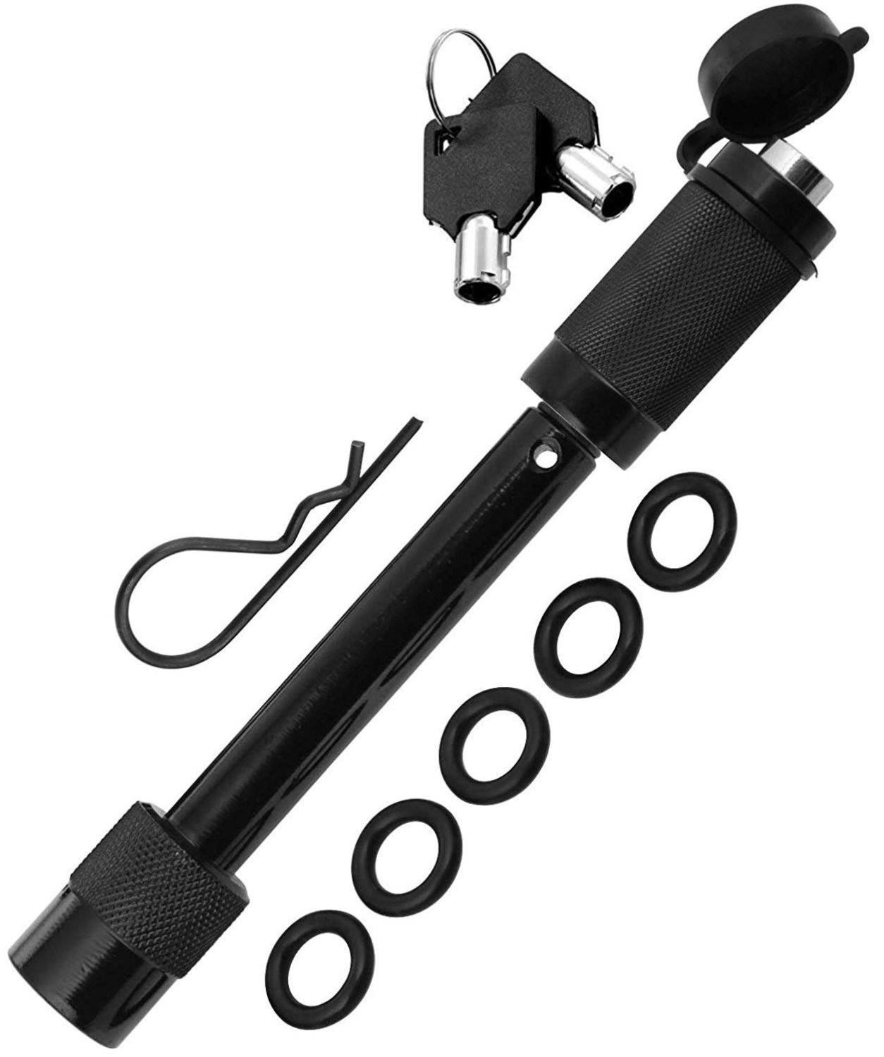 - 1 pc 5/8″ Hitch lock pin with extra safety clip, 2 keys, rubber cap and 5 pcs O-rings for perfect adjustable fit;